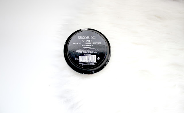 There is 7.5g of product, which is in a swirl design. This shade is called Peach Lights and it's a cool peach. All together Makeup Revolution sell 3 Vivid Baked Highlighters and the other two shades are called Golden Lights and Pink Lights.